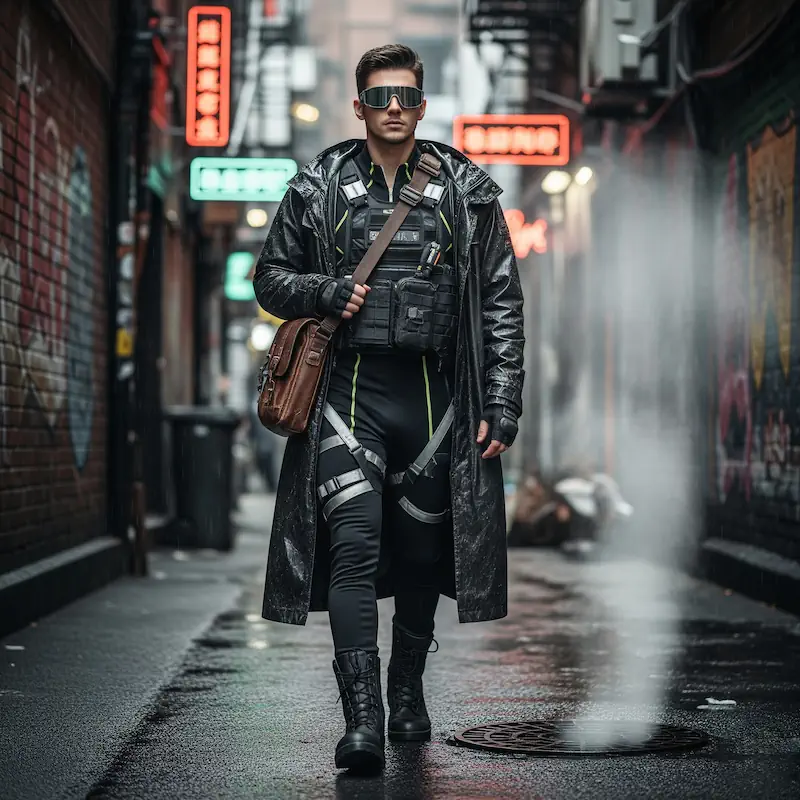 Vestir cyberpunk es adoptar una postura, llevar un argumento cosido en la tela. Cada elección es una respuesta a las presiones del mundo contemporáneo.